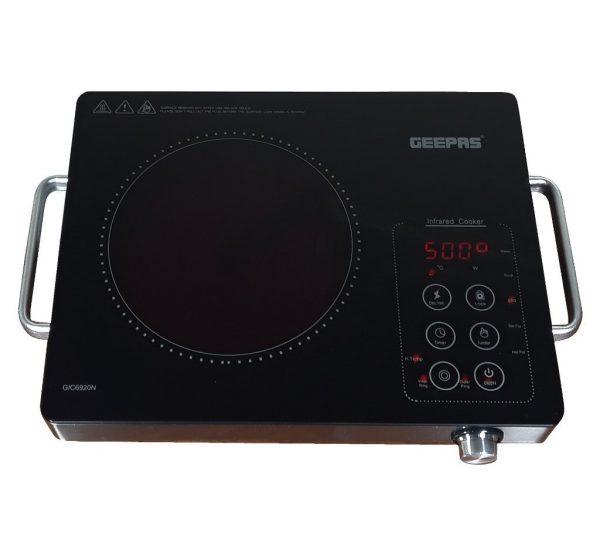 شرکت جی پاس GEEPAS با عرضه بیش از 1500 کالا در زمینه لوازم برقی و خانگی و … بیش از 37 سال است که در آسیا و اروپا و قاره آمریکا فعالیت مستمر دارد.اجاق گاز مادون قرمز ( Infrared) یا بعبارتی اجاق برقی القایی مدل GIC6920N با دارا بودن صفحه شیشه ای مشکی یک دست بسیار مقاوم به حرارت بطور یکدست در بالای اجاق ، تنها حرارت را در محدوده دایره ای که با خط چین نیز مشخص شده است ایجاد می کند و در بقیه مناطق صفحه دما کاملا با دمای محیط یکسان است .می توان هر گونه ظرفی را برروی دستگاه قرار داده و دمای حرارت ساطع شده را از 60 درجه تا 2000 درجه سانتیگراد تنظیم کرد . اجاق دارای صفحه نمایش سون سگمنت با 4 رقم می باشد که می توان دما و زمان تنظیم شده تایمر و ولتاژ برق را نیز مشاهده کرد. گرمای ساطع شده را می توان در دو حالت حلقوی و یا مرکزی و نیز ترکیب این دو با هم ایجاد کرد.دستگاه دارای قفل می باشد که با نگه داشتن بمدت 5 ثانیه فعال و نیز به همین صورت غیر فعال می شود . کل عملیات کنترل بطور کامل لمسی است . توان حرارتی دستگاه 2000 وات می باشد دستگاه از تایمر 3 ساعته برخوردار می باشد .با روشن شدن دستگاه فن آن به کار می افتد و بعد از خاموش کردن دستگاه نیز تا هنگام خنک شدن کامل دستگاه جهت جلوگیری از آسیب رسیدن به دستگاه و یا کاربر ، فن کار می کند و بطور خودکار خاموش می شود پس دستگاه را تا هنگام خاموش نشدن فن از برق نباید خارج کرد .دستگاه دارای 3 شاخه خارجی مجهز به فیوز داخلی جهت حفاظت از شبکه برق خانگی و خود دستگاه برخوردار است.