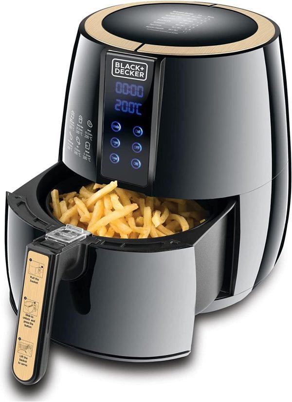 این سرخکن با ظاهری مشکی طلایی یکی از بهترین سرخ کن های تولید شده توسط شرکت بلک اند دکر است که علاوه بر زیبایی، کارایی بالایی هم دارد. ظرف روغن و مخزن این سرخکن در قسمت پایینی آن قرار گرفته و با کمک دستگیره از بدنه خارج میشود. داخل این مخزن، یک سبد توری وجود دارد که میتوان مواد غذایی را در آن قرار داد. ظرفیت این مخزن 4 لیتر بوده و به راحتی میتوان غذای یک خانوادهی کمجمعیت را به وسیله آن تهیه نمود.