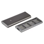 یکی از اولین نکاتی که هنگام مشاهده این محصول جلب توجه می‌کند، طراحی جذاب و مینیمال آن است. شیائومی برای این کیت از یک کیس آلومینیومی بسیار باکیفیت استفاده کرده که هم ظاهر زیبا دارد و هم باعث محافظت کامل از سری‌ها و دسته پیچ‌گوشتی می‌شود. این کیس پیچ گوشتی شیائومی مدل Mi Precision Screwdriver Kit به‌صورت کشویی باز و بسته می‌شود و استفاده از آن بسیار لذت‌بخش است. همین ویژگی سبب شده محصول برای حمل‌ونقل، سفر، کارهای بیرونی و تعمیرات سیار کاملاً مناسب باشد.